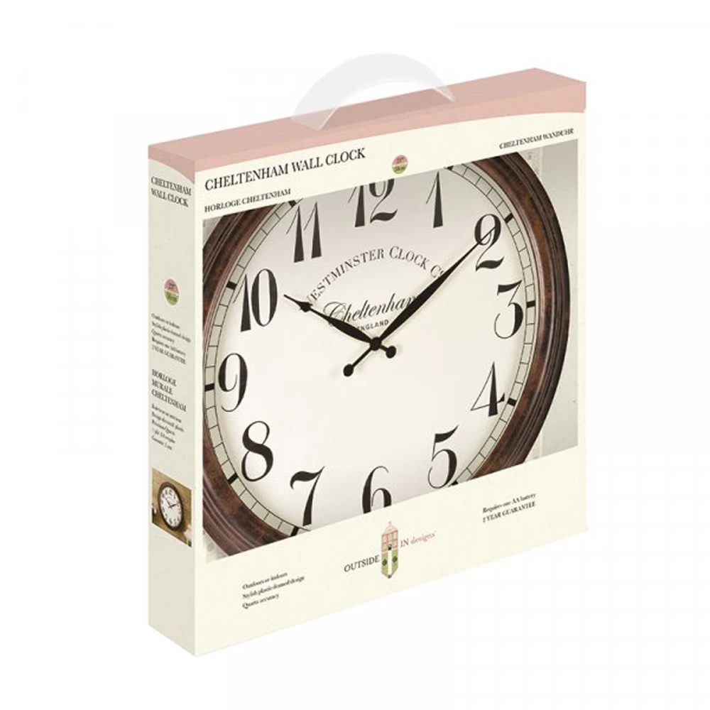 Deze klassieke klok geeft zowel de tijd aan als de temperatuur in graden Celsius en Fahrenheit. De klok zal opvallen door zijn grote diameter (60cm) en zijn klassieke ontwerp met het bruine antiek effect frame. De klok is weerbestendig en daarom te geschikt voor zowel binnen als buiten.