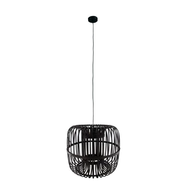 Deze prachtige zwarte hanglamp is gemaakt van bamboe en brengt een natuurlijke sfeer in elke ruimte. Bamboe is een duurzaam en milieuvriendelijk materiaal dat op een verantwoorde manier wordt verbouwd. Het geeft een uniek uiterlijk en voegt een tijdloze aanwezigheid toe aan je interieur. Deze hanglamp heeft een modern ontwerp met een minimalistische uitstraling. Het bamboe frame is ontworpen om een sterke en stijlvolle basis te bieden voor de lamp. De hanglamp heeft een naturel afwerking die de nadruk legt op de natuurlijke textuur van het bamboe. Door de open kap geven de lichtstralen een mooi effect op de muur. Het resultaat is een verfijnde en stijlvolle hanglamp die je interieur een warme en uitnodigende sfeer geeft. Met zijn duurzame en milieuvriendelijke materialen, zijn elegant ontwerp en zijn functionele verlichting, is de bamboe hanglamp de perfecte verlichting voor elke stijlvolle woning. Combineer de lamp met het andere formaat voor een trendy look boven bijvoorbeeld de eettafel.