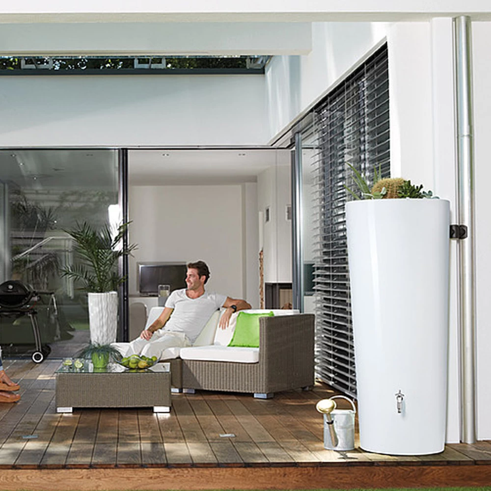 Deze regenton van Garantia slaat niet alleen gevallen regenwater op, maar kan ook worden gebruikt als een plantenbak! Dankzij het dikwandige kunststof is de plantenbak weersbestendig en vorstbestendig. Met het aftappunt kan je de regenton in de vriesperiode helemaal leeg laten lopen. Ook wordt er een tapkraan meegeleverd waarop o.a. een tuinslang aangesloten kan worden met Gardena koppeling. Inhoud 350L. Kleur: cocos/wit