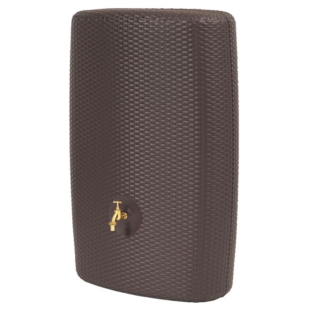 Deze regenton is gemaakt van polyrotan wat de regenton een geweven uitstraling geeft. De messing kraan maakt van deze regenton een chique exemplaar in jouw tuin! De regenton is UV-bestendig en kan leeg, met de kraan open, ook in de winter buiten blijven staan. Dankzij zijn unieke vorm is de regenton tegen de muur te plaatsen en met de meegeleverde windverankeringsset is deze ook goed vast te zetten.