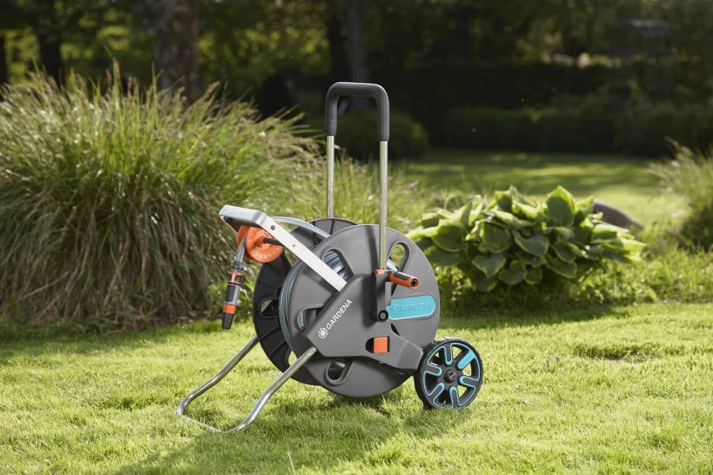 De Gardena L slangenwagen heeft als extra een stevige onderstel. Hierdoor zal de slangenwagen blijven staan, zelfs als er aan getrokken wordt tijdens het sproeien. De slangenwagen wordt geleverd met een Gardena tuinslang van 50 meter lang en diverse aansluitstukken, waarmee je de set gelijk kunt gebruiken. Daarnaast is de Gardena AquaRoll L Easy set vorstbestendig en zit er 5 jaar garantie op.
