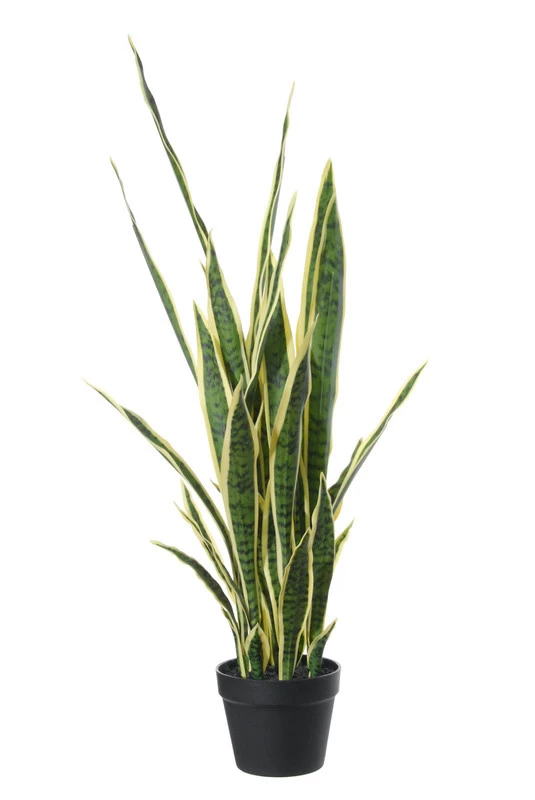 De hoogte van deze Sanseviera is 105cm. Deze plant met zijn strakke bladeren doet het weer goed in elk interieur. De plant zit in verzwaarde kunststof pot