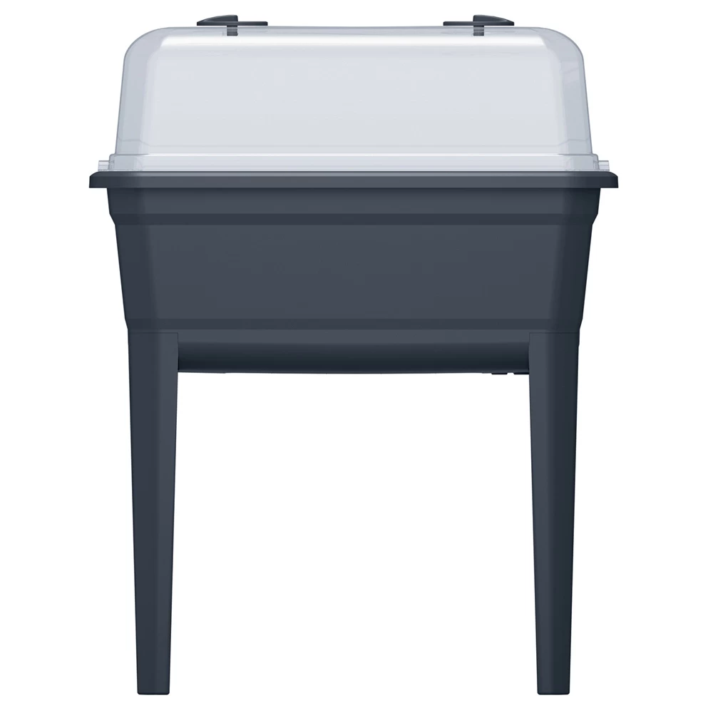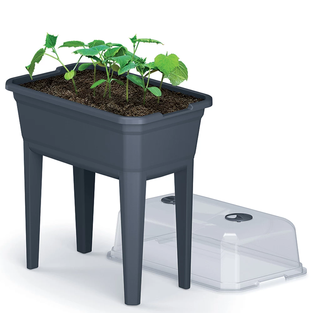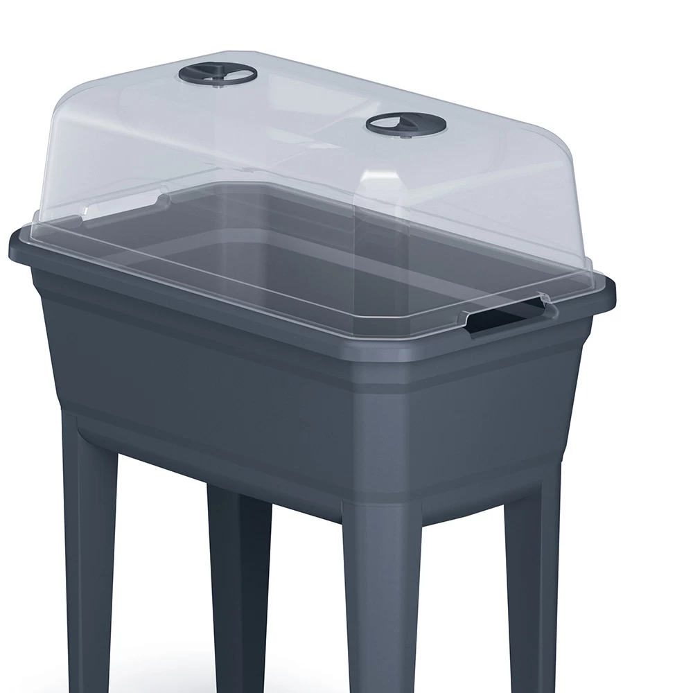 Deze kweekbak op poten is een draagbare kweekbak waar je onder andere kruiden in kan kweken. Dankzij de transparante polycarbonaat deksel zijn de zaaiingen eenvoudig te checken en de twee ventilatieopeningen kunnen worden gebruikt om de juiste vochtigheid voor jouw plantjes te controleren. De afmetingen zijn 60x36x75 cm, waardoor deze kweekbak ook goed op een balkon kan staan en hier niet te veel ruimte in beslag neemt! Antraciet