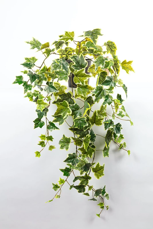 Een bonte Hedera met wat groter blad en een mooie print. De plant is voorzien van ijzerdraad in de stelen, zodat ze goed te vormen zijn. Plant wordt geleverd in een verzwaarde pot van 13cm.